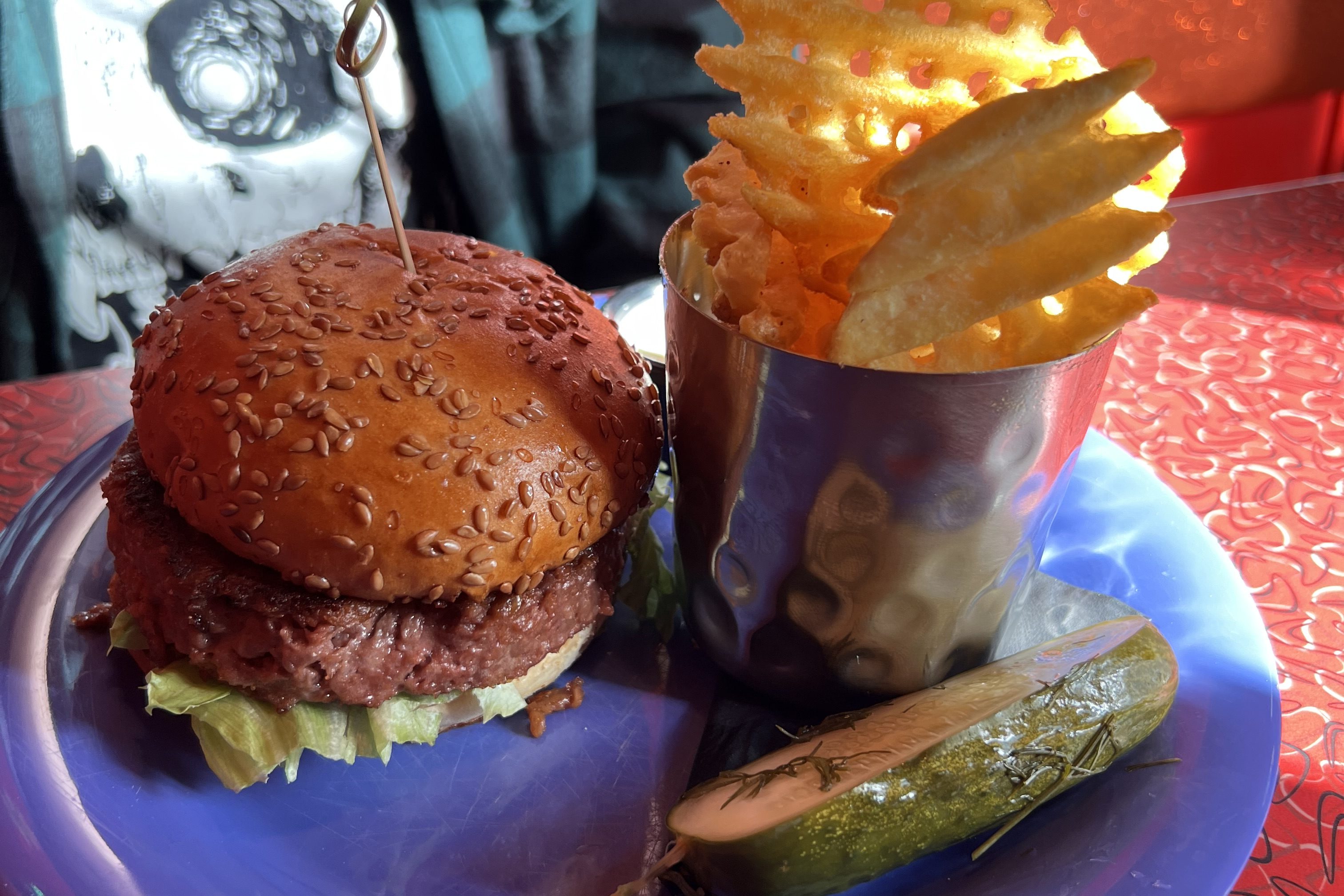 I don’t know why they call this “basic” because it is anything but. It’s a thick, juicy burger with all the classic fixings, plus their signature marinated tomatoes, which add a tangy, almost sun-dried tomato flavor. Layla was bummed when they got rid of the Build Your Own Burger option, but this one still hits the spot. You can get it gluten-free with a bun swap or even make it vegan. It comes with crispy waffle fries and a crunchy Grillo’s pickle, which adds the perfect salty crunch to every bite.