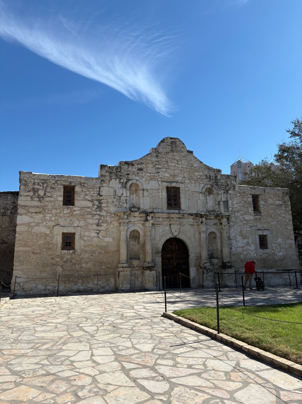 For some reason I had imagined the Alamo sitting out on a wide open field somewhere. Instead, it’s right in the middle of downtown San Antonio, surrounded by tall buildings, restaurants, and city traffic.